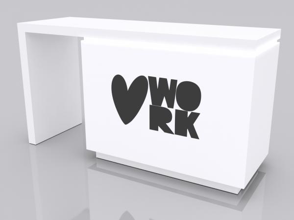 MOD-1744 Waterfall Workstation CounterCustom Counters and Pedestals offer the convenience of a fully-assembled component with all the benefits of a custom design. Choose one of the many existing kit designs or request a design unique to your trade show needs. Either way, you'll discover why a custom counter or pedestal adds sophistication and features not found on most portable or modular components. Nearly all come with locking storage. Don't see exactly what you want? No problem. We specialize in designing and building counters and pedestals that meet any need.